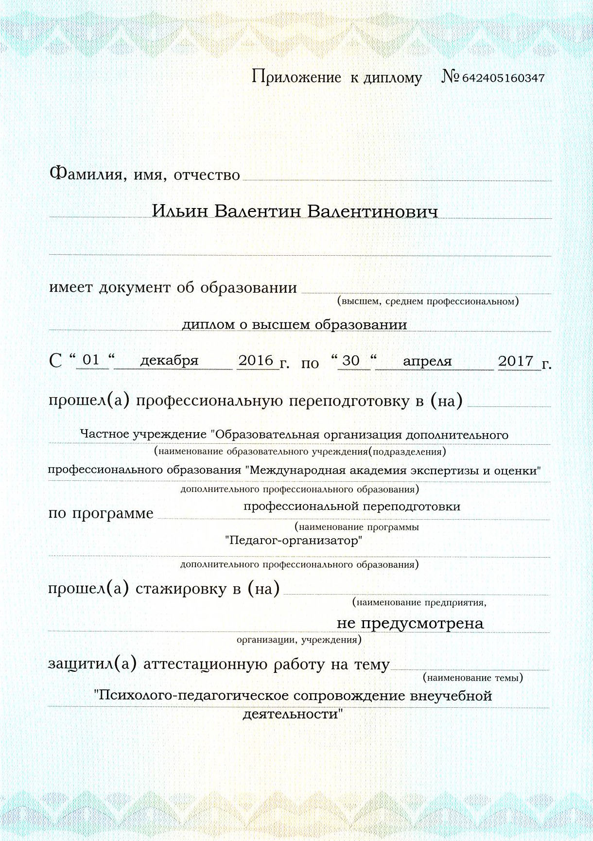 Требования: наличие высшего или среднего профессионального образования.